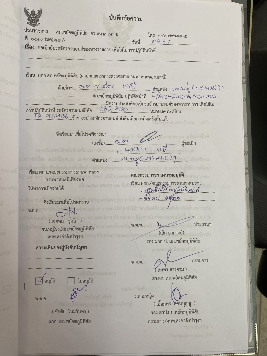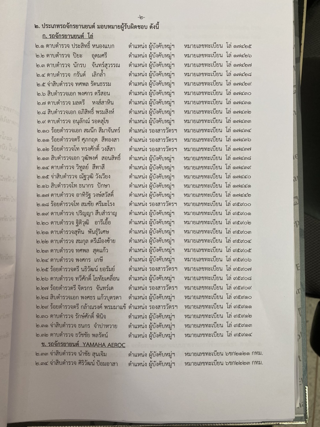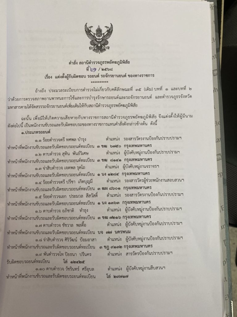แต่งตั้งผู้รับผิดชอบรถยนต์และรถจักรยานยนต์และคำสั่งแต่งตั้งคณะกรรมการพิจารณาคำร้อง