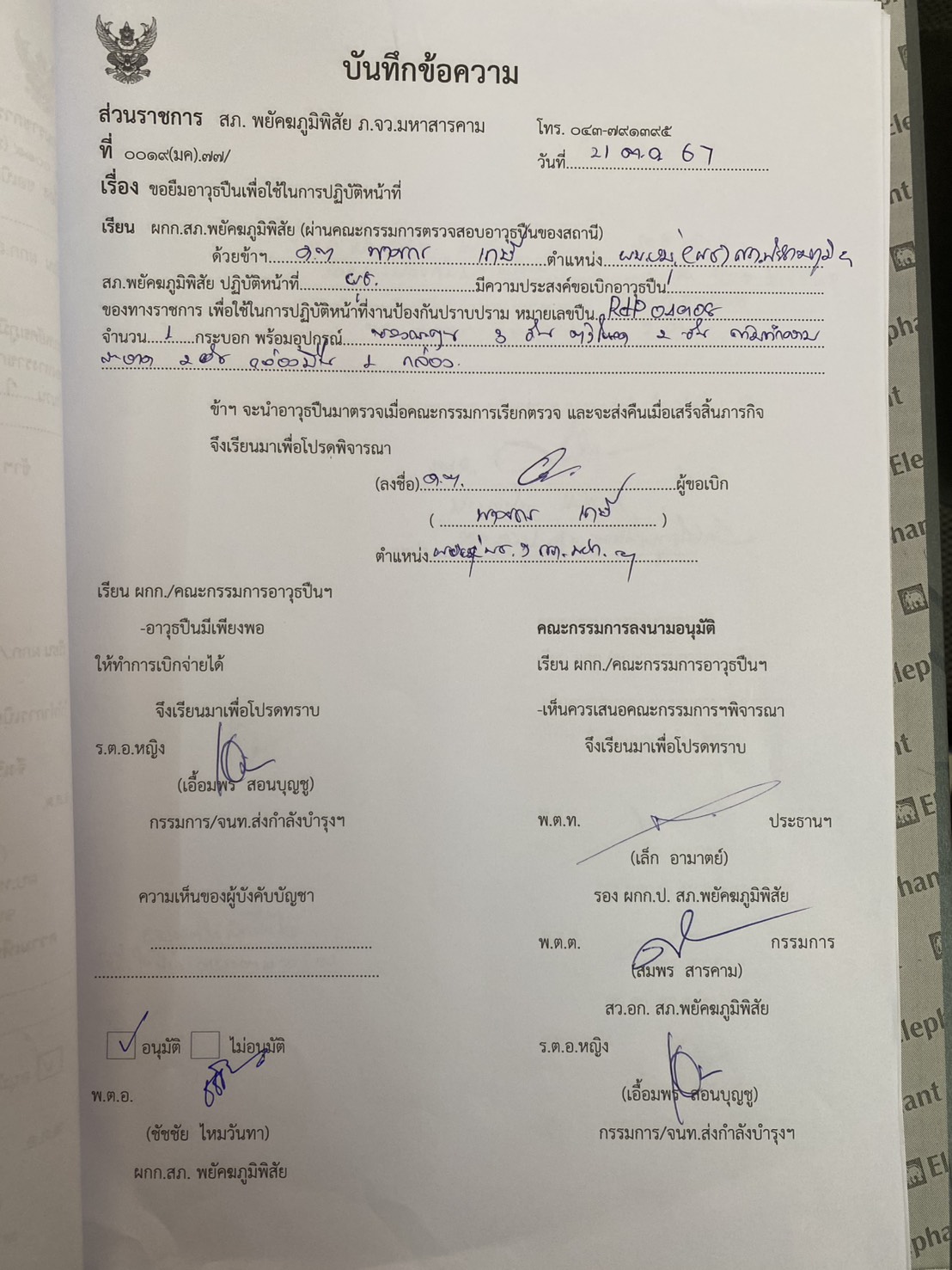 กำหนดแนวทางการยืมเบิกจ่ายทรัพย์สินของทางราชการ
